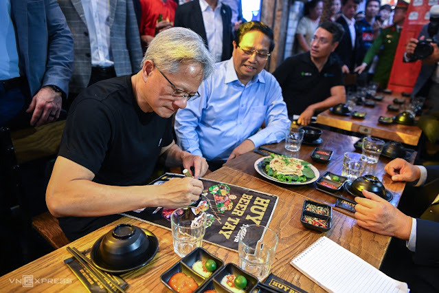 젠슨 황은 식당에서 실제로 손을 움직이며 그 비전을 만들어갔어요.